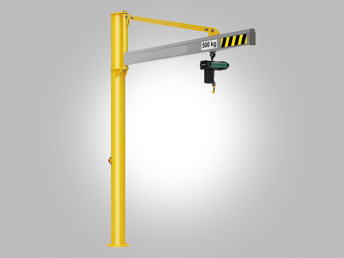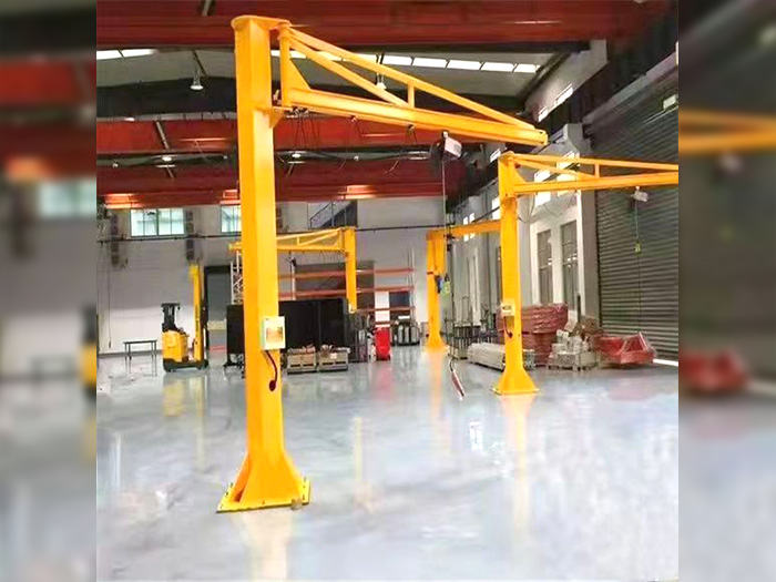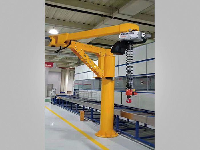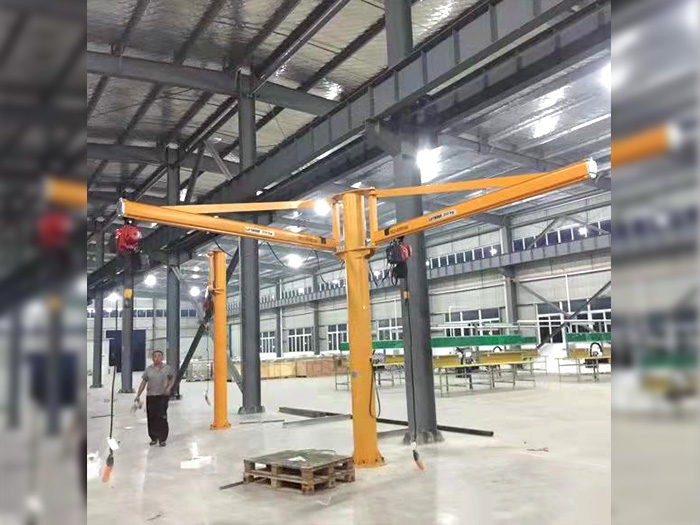 內(nèi)掛式旋臂起重機(jī)是我公司在定柱式旋臂起重機(jī)的基礎(chǔ)上開(kāi)發(fā)的一種新型吊運(yùn)設(shè)備。該機(jī)旋臂梁采用空心型鋼結(jié)構(gòu),自重輕、強(qiáng)度高、鋼性好、經(jīng)濟(jì)耐用,旋臂運(yùn)動(dòng)可根據(jù)用戶(hù)要求采用電動(dòng)或手動(dòng),內(nèi)置式行走機(jī)構(gòu)采用帶滾動(dòng)軸承的工程塑料滾輪,摩擦力小、行走輕快,且結(jié)構(gòu)尺寸小,有利于提高吊鉤的垂直行程,與 PK 型電動(dòng)環(huán)葫蘆配套使用可以快捷靈活地完成吊運(yùn)作業(yè)。